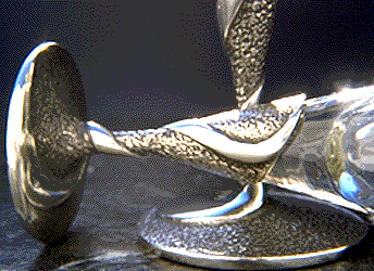 PEWTER & HAND-BLOWN GLASS FLUTES (close up view of pewter bases)